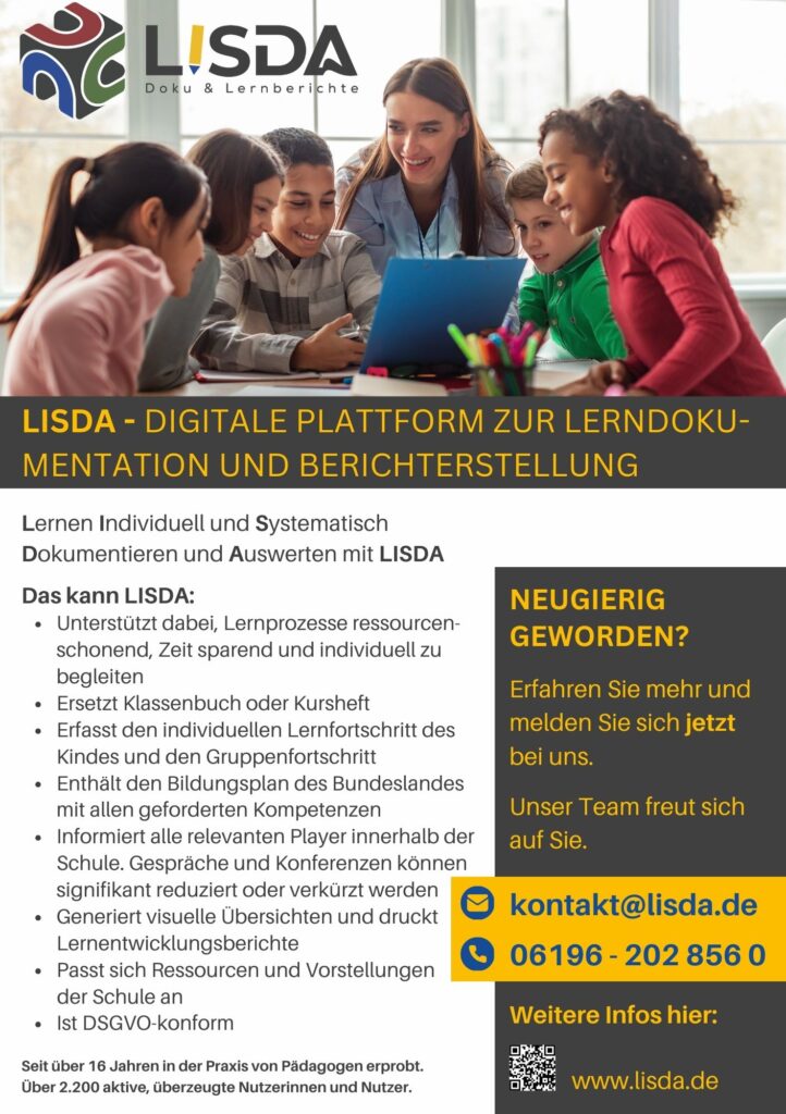 16 Jahre Erfahrung mit digitaler Lerndokumentation und Berichten an Schulen in freier Trägerschaft. Daraus entstand LISDA: das digitale System zur Dokumentation von individuellem Lernfortschritt und dem Schreiben von Berichten an staatlichen Schulen.